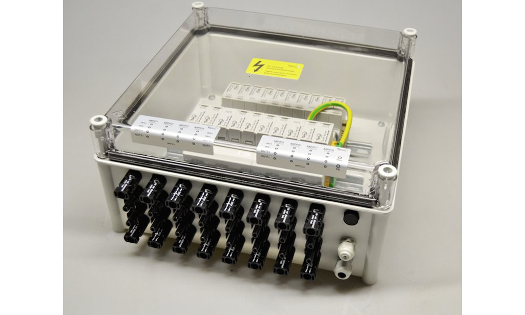 TARU Generatoranschlusskasten: 8 MPPT, 1IN/MPPT, 1OUT/MPPT, Überspannungsableiter TYP I/II, MC4 Stecker-Anschluss, Signalkontakt, IP65