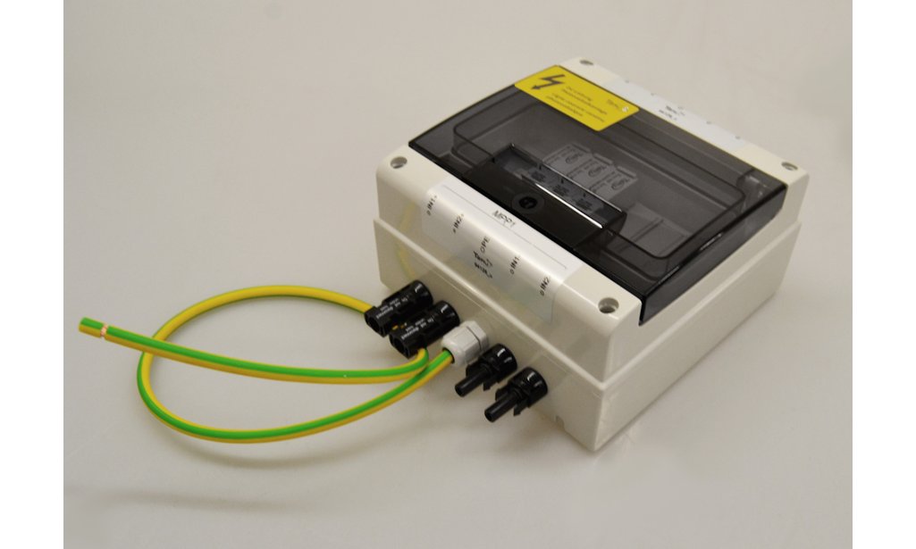 TARU Generatoranschlusskasten: 1 MPPT, 2IN/MPPT - oben, 2OUT/MPPT - unten, Überspannungsableiter TYP I/II, MC4 Stecker-Anschluss, Signalkontakt, IP65