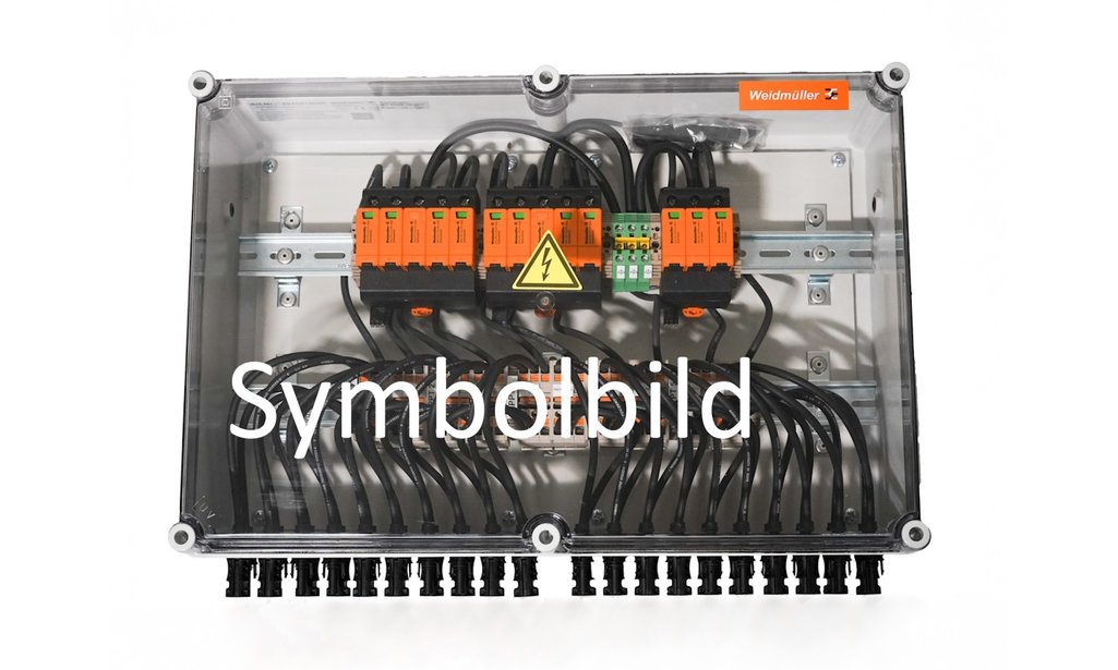 Boîte de jonction de générateur PV : 5 MPPT, 2IN/MPPT, 2OUT/MPPT, parafoudre TYPE I/II, connecteur Stäubli-EVO2, contact de signalisation, courant maximal par sortie et MPPT 41 A, tension assignée CC (Un) 1'100 V.