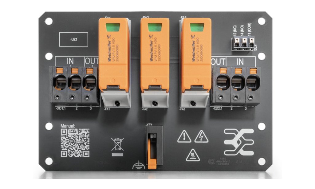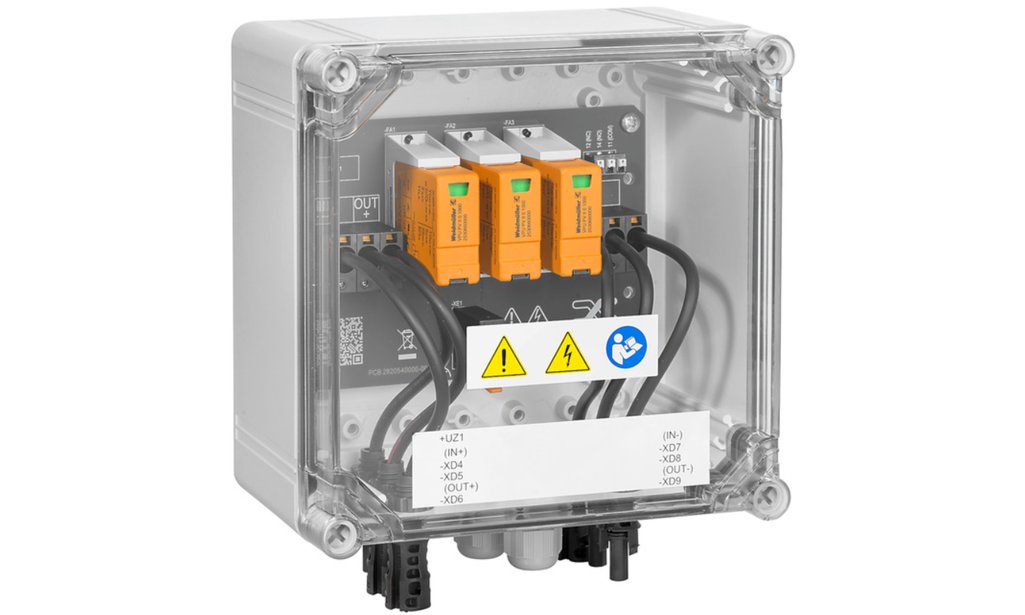 PVN DC 1I/1O 1MPP SPD1R EV011 PV-Next, boîtier de raccordement de générateur PV : 1 MPPT, 1IN/MPPT, 1OUT/MPPT, parafoudre TYPE II, connecteur EVO2 Stäubli, contact de signalisation, courant maximal par sortie et MPPT 30 A, tension assignée (Un) 1'100 V
