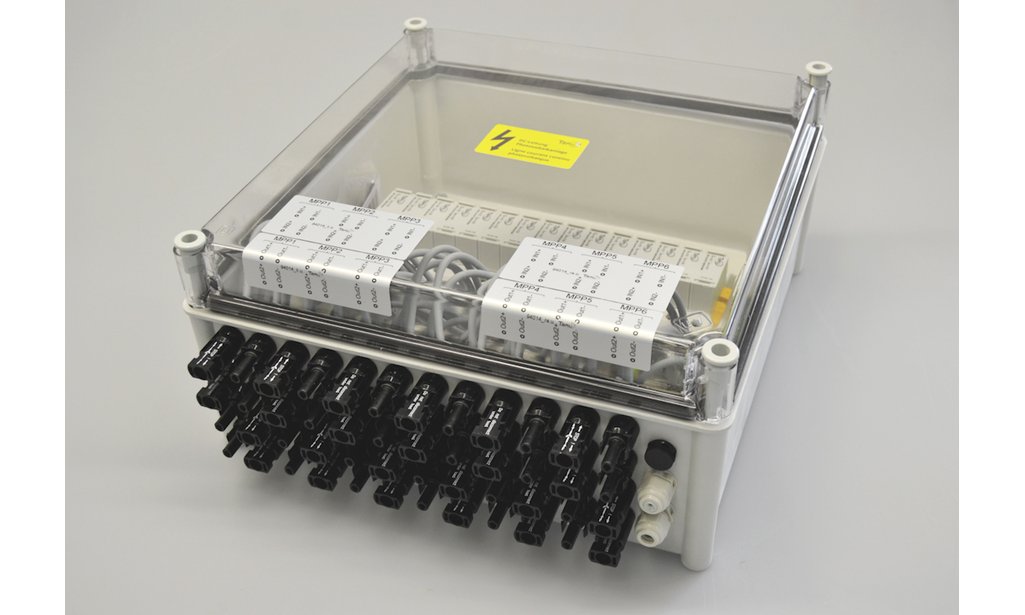 TARU Boîte de jonction de générateur : 6 MPPT, 2IN/MPPT, 2OUT/MPPT, parafoudre TYPE I/II, raccordement de la fiche MC4, contact de signalisation, IP65