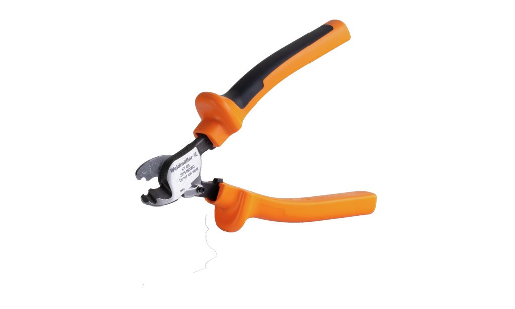 Outil de coupe à une main jusqu'à 8 mm de diamètre extérieur La géométrie spéciale de la lame permet de couper sans coincement les conducteurs en cuivre et en aluminium avec un minimum d'effort. L'outil de coupe est également équipé d'une isolation de protection certifiée VDE et GS jusqu'à 1 000 V conformément à la norme EN/IEC 60900.