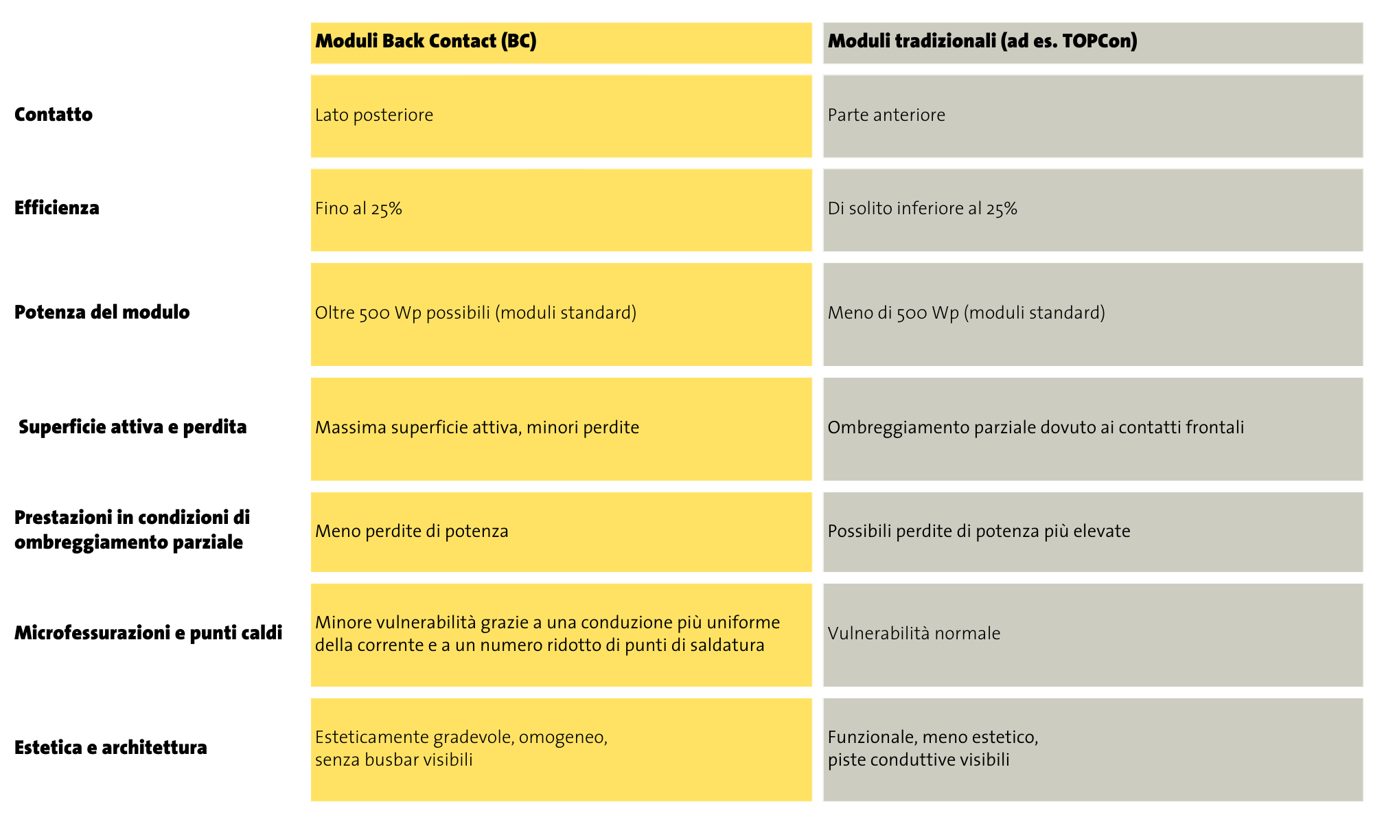 I moduli Back Contact presentano diversi vantaggi rispetto ai moduli tradizionali.