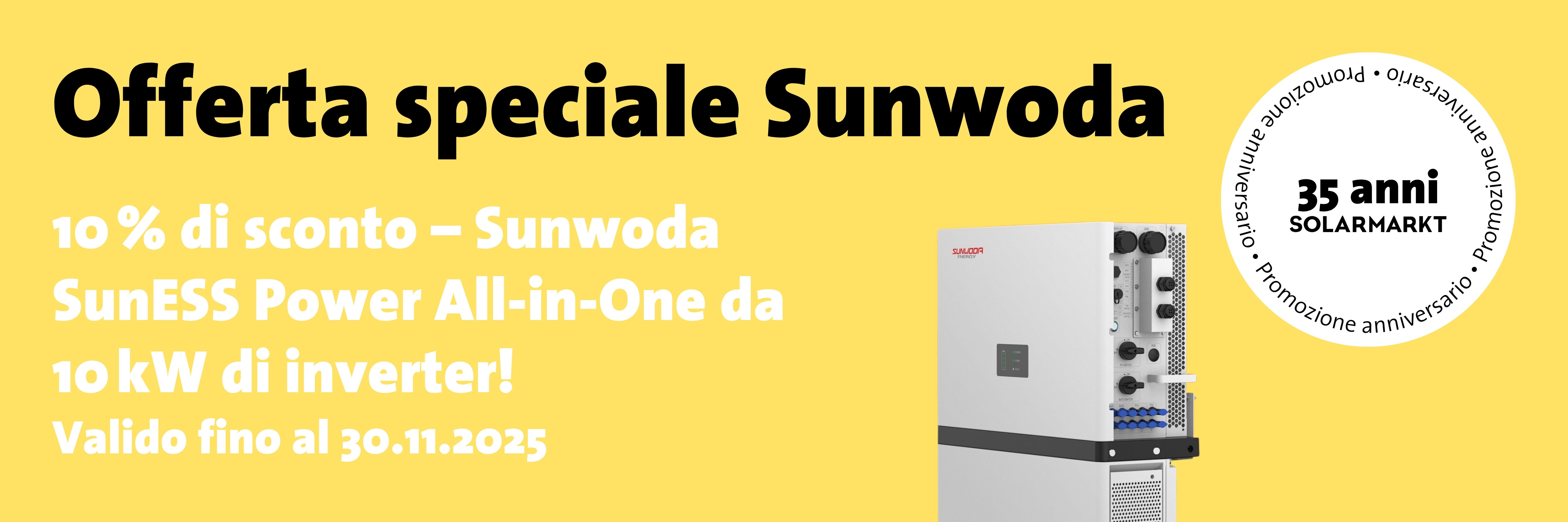 A causa del carico di lavoro molto elevato ci concentriamo come grossisti sulle richieste dei nostri clienti diretti. Al momento non possiamo accettare le richieste di committenti. Consigliamo di mettervi in contatto direttamente con l’installatore solare della vostra zona.