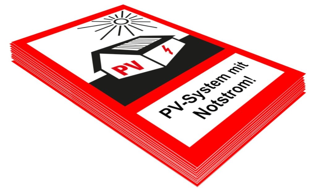 PV MARKER NOTSTROM VPE 10 Adesivo di avvertimento PV Vigili del fuoco / Alimentazione di emergenza - 90 x 100 mm Per impianti fotovoltaici in combinazione con un sistema di alimentazione di emergenza, da applicare sul quadro elettrico di distribuzione 1 blocco da 10 adesivi